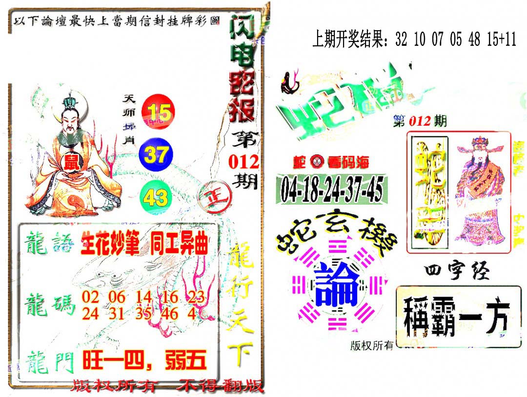 012期:澳门六合彩『蛇报闪电版』